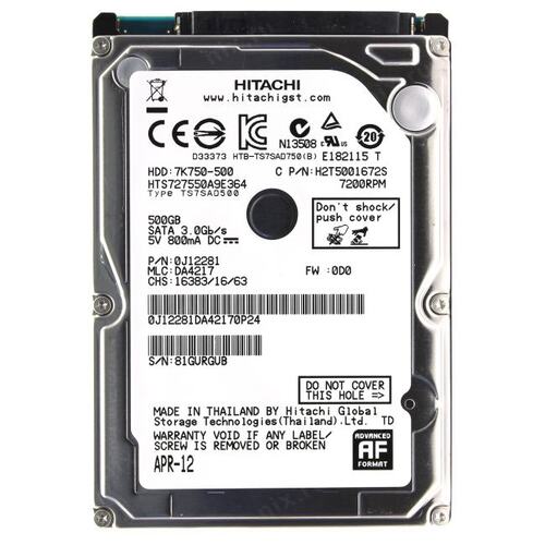 ناموجودهارد لپ تاپ برند هیتاچی 2.5 اینچی مدل HTS727550A9E364 ظرفیت 500گیگابایت کارکرده