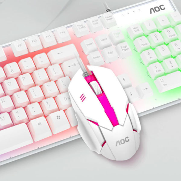 کیبورد و ماوس گیمینگ ای او سی مدل KM100 ، سوییچ ممبران ، Full-Size ، نورپردازی LED RGB