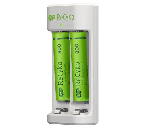 باتری نیم قلمی شارژی سایز AAA جی پی مدل ReCyko 800mAh بسته 2 عددی همراه با شارژر اصلی قطع کن اتوماتیک