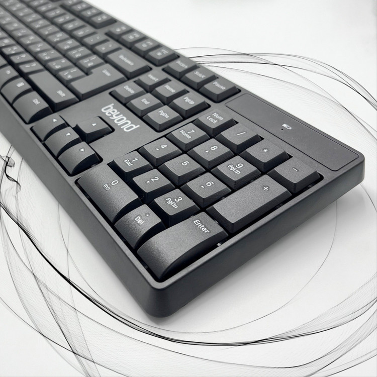 کیبورد و ماوس بیاند (کمبو) BMK-5110 RF از طریق اتصال گیرنده وایرلس USB به دستگاه متصل میشود. تعداد کلیدهای کیبورد 104 عدد است. ماوس این ست کیبورد دارای سنسور اپتیکال با دقت ۱2۰۰ DPI است. طراحی این ماوس بسیار راحت است و بعد از استفاده طولانی مدت از کار با این ماوس خسته نخواهید شد.