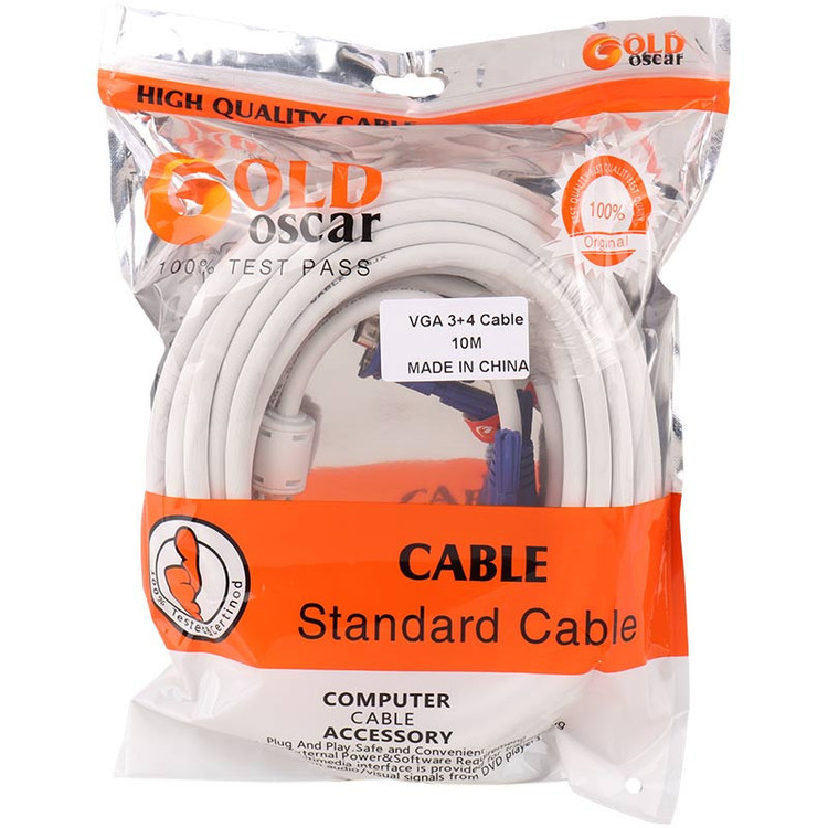 کابل تصویر 4+3 VGA گلد اسکار به طول 10 متر مجهز به دو عدد نویز گیر جهت دریافت تصاویر باکیفیت بالا