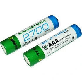 باتری نیم قلم شارژی DIGITAL C.F.L 2700 mAh در پک و بسته بندی دو تایی با مشخصه سایز AAA که در بین مردم با نام باطری نیم قلمی شناخته می شود و با ولتاژ 1.2 ولت مناسب برای انواع دستگاه های الکترونیکی که انرژی خود را از باطریهای قابل شارژ تامین می کنند، مانند انواع دوربین های دیجیتال، ریموت کنترل تلویزیون، انواع اسباب بازیهای کنترلدار، گوشیهای تلفن ثابت در خانه و اداره جات و … میباشد.