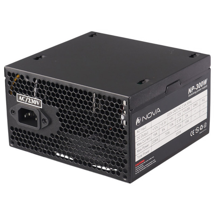 منبع تغذیه NP-300 برند نوا از نوع غیر ماژولار بر اساس فرم فاکتور ATX طراحی شده است که برای انواع سیستم ها با مادربردهای اندازه استاندارد مناسب می باشد. این منبع تغذیه با بهره بردن از متریال و قطعات با کیفیت و استانداردهای حفاظتی OVP ،OPP و UVP، امنیت قطعات داخلی سیستم را تامین می کند. اتصالات این منبع تغذیه شامل یک عدد کانکتور IDE، سه عدد کانکتور SATA، یک عدد کانکتور 4 پین ATX و یک عدد کانکتور 4+20 پین مادربرد می باشد. یک فن 120 میلی متری نیز بر روی این منبع تغذیه تعبیه شده که فرآیند خنک سازی و متعادل سازی دما را به خوبی اجرا نموده و از آسیب ناشی از فشار بار اضافی و گرمای بیش از حد به قطعات داخلی جلوگیری می کند.