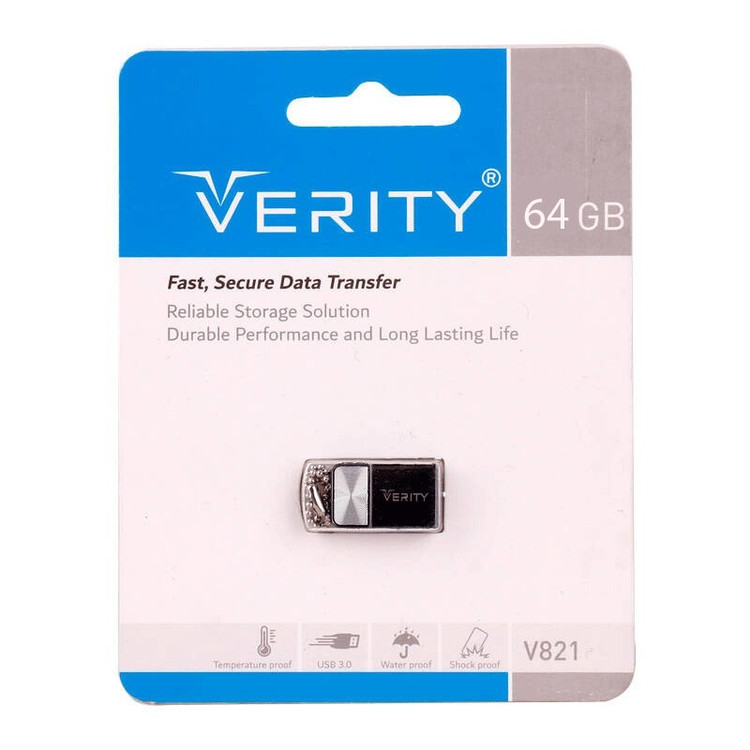 فلش مموری وریتی مدل V821 USB 3.0 ظرفیت 64 گیگابایت یکی از پر فروش ترین فلش مموری های وریتی است.این فلش مموری به دلیل اندازه کوچک و جنس بدنه فلزی و مقاوم در برابر ضربه و فشار به راحتی قابل حمل در هر مکانی است. این فلش با سیستم عاملهای ویندوز و مکینتاش سازگاری دارند.همچنین دارای حلقه ای در انتهای بدنه و قلاب ظریف فلزی برای وصل کردن به آن است و یا اینکه میتوانید به جاکلیدی وصل کنید که حمل و نگهداری این فلش را راحت تر میکند. این فلش مموری دارای رابط اتصال USB 3.0 است که سرعت انتقال داده بالایی را میتواند برای شما فراهم کند.