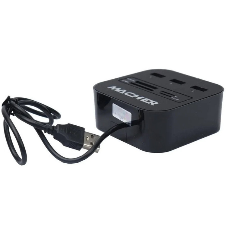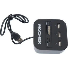 با همه گیر شدن وسیله ها و گجت های دارای USB و کم شدن تعداد پورت ها در لپ تاپ و رایانه های امروزی همواره نیاز به استفاده از یک هاب و رم ریدر احساس می شود، هاب ها با اضافه کردن تعداد پورت ها به شما امکان متصل کردن وسیله های بیشتری را می دهند تا تمامی نیاز های خود را برطرف کنید. هاب و رم ریدر Macher MR-139 یک محصول میان رده و اقتصادی است که با طراحی ساده و در عین حال کاربردی خود می توند نیاز بسیاری از کاربران را برطرف کند، هاب MR-139 از ۳ پورت USB 2.0 بهره می برد تا میزبان پذیرش موس، کیبورد، گوشی موبایل و تمام وسیله های دارای این پورت باشد. رم ریدر Macher MR-139 از کارت های MS PRO DUO ،SD/MMC ،M2 و Micro SD پشتیبانی می کند تا بتوانید هر نوع کارت حافظه ای را در آن قرار داده و به انتقال اطلاعات بپردازید. این هاب ۳ پورت از قابلیت Plug & Play پشتیبانی کرده و می تواند اطلاعات را با سرعت ۴۸۰ مگابیت بر ثانیه منتقل کند.